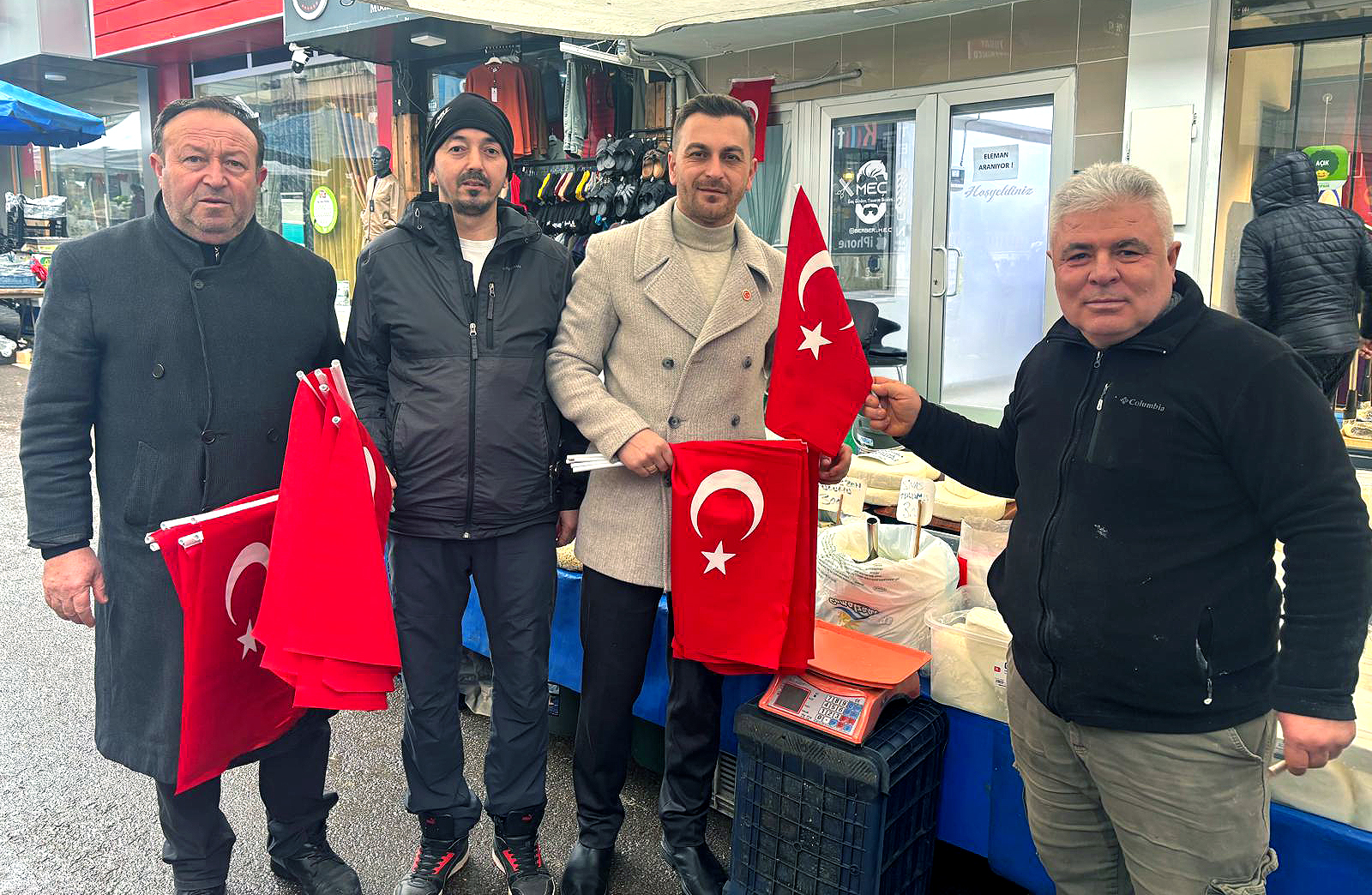 MHP Kandıra İlçe Başkanı Güngör Gödek öncülüğünde gerçekleştirilen çalışmada, Kandıra Cumartesi Pazarı’nda vatandaşlara Türk bayrağı dağıtıldı. Etkinlikte MHP Kocaeli Büyükşehir Belediye Meclis Üyesi Mustafa Yağız ile ilçe yönetiminden isimler de hazır bulundu.
